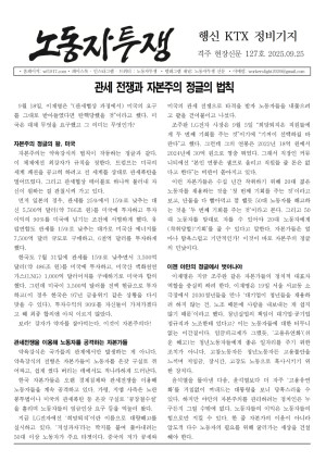 격주간 철도 현장신문 <노동자투쟁> 1면 사설, 2025년 9월 24일 9월 18일, 이재명은 “(관세협상 과정에서) 미국의 요구를 그대로 받아들였다면 탄핵당했을 것”이라고 했다. 미국은 대체 무엇을 요구했고 그 의미는 무엇인가? 자본주의 정글의 왕, 미국 자본주의는 약육강식의 법칙이 작동하는 정글과 같다. 이 …