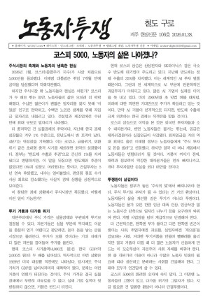 격주간 철도 현장신문 <노동자투쟁> 1면 사설, 2026년 1월 28일 주식시장의 축제와 노동자의 냉혹한 현실 2026년 1월, 코스피(종합주가 지수)가 사상 처음으로 5,000선을 돌파했다. 이재명 대통령은 취임 7개월 만에 공약을 달성했다며 자화자찬했다. 하지만 주식시장 밖 노동자들의 현실은 어떤가? 코스피가…