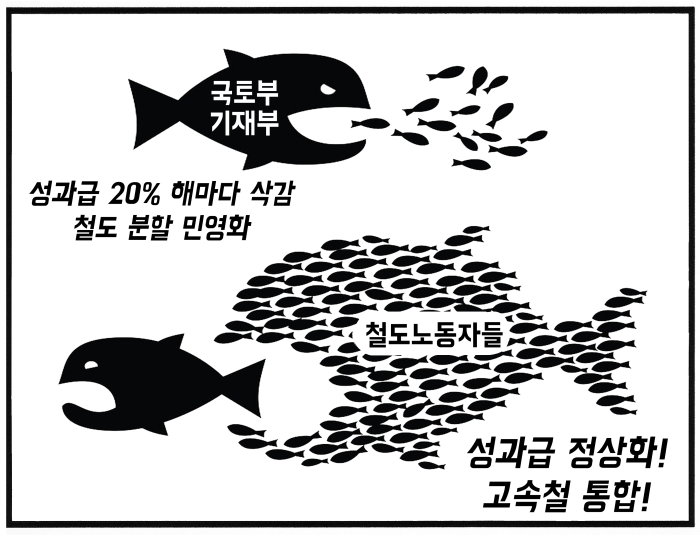철도 행신 KTX 정비기지 현장신문 <노동자투쟁> 129호 만평입니다.