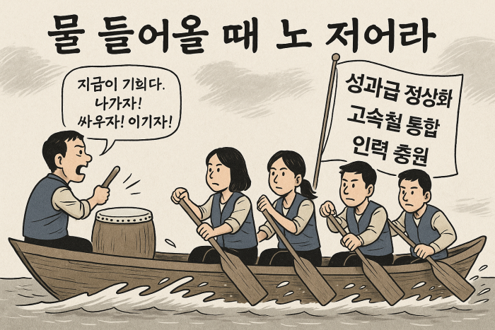 철도 행신 KTX 정비기지 현장신문 <노동자투쟁> 131호 만평입니다.